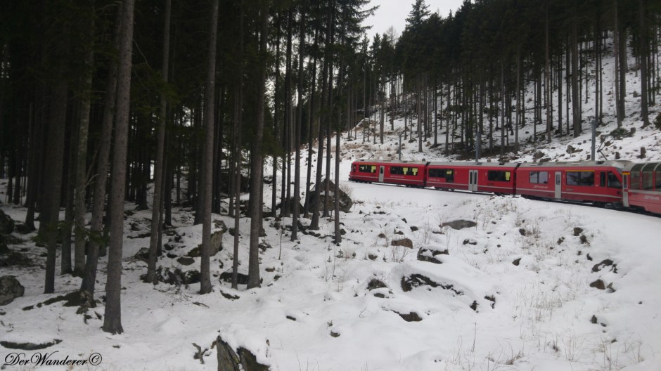 Da qui il trenino inizia ad arrampicarsi sulla montagna e guadagna quota attraverso tornanti che offrono un panorama mozzafiato su tutta la Val Poschiavo.