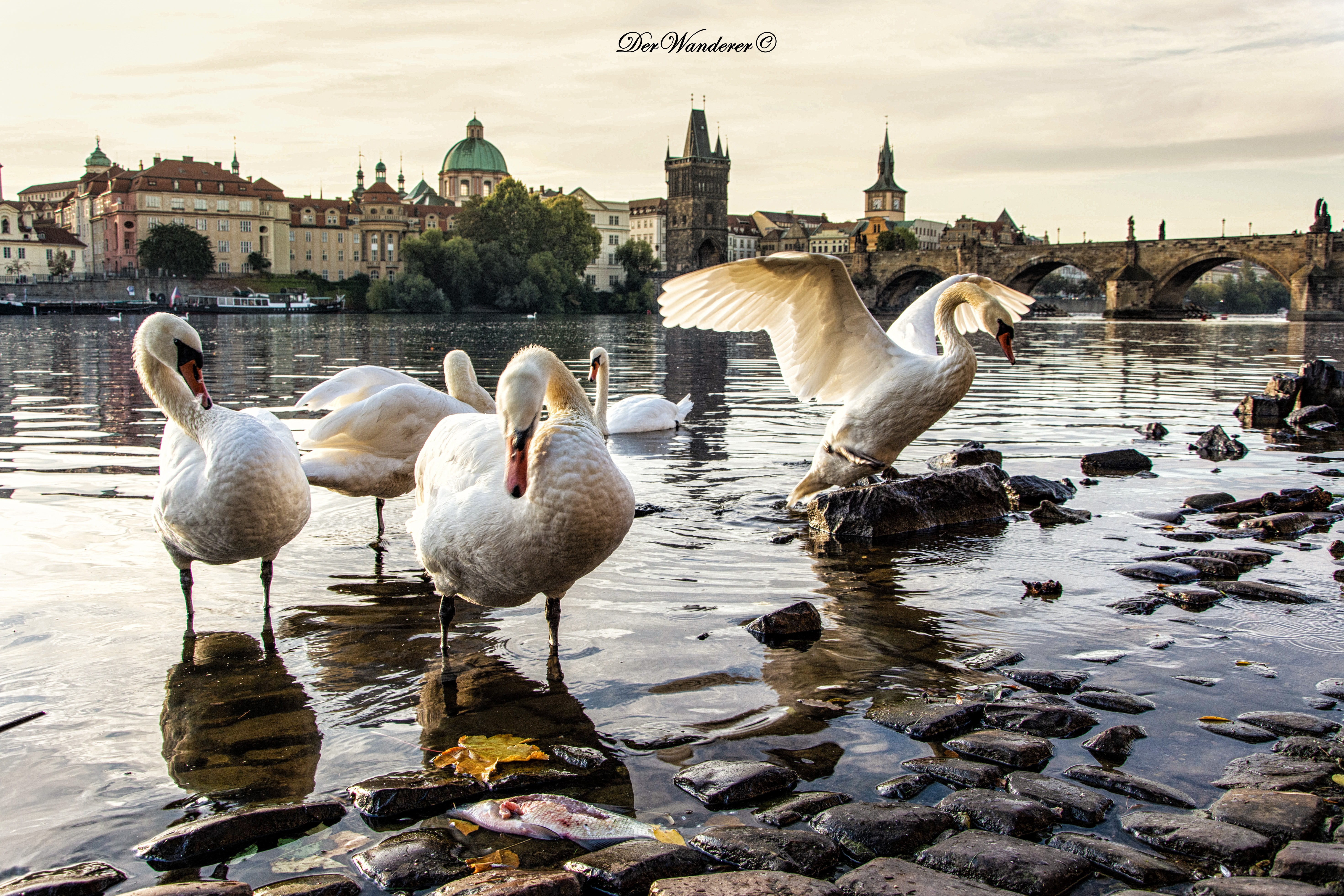 Subito dopo il ponte, nel quartiere di Mala Strana, scendete sulla riva della Moldava per un incontro ravvicinato con i cigni che si lasciano scaldare dai primi raggi di sole del mattino.