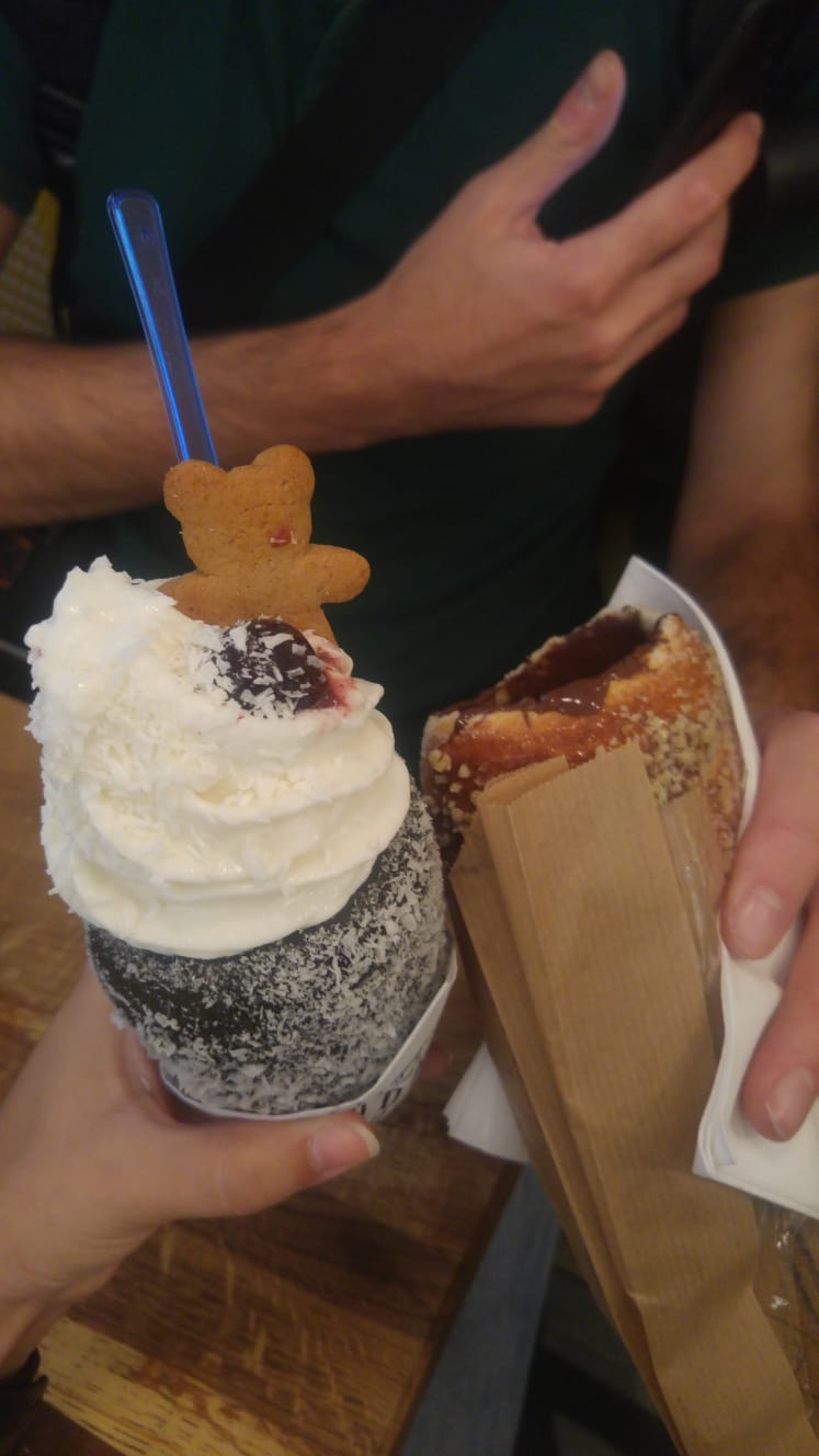Per una golosa merenda invece non potete non provare il dolce tipico di Praga: il Trdelnik o Trdlo (vi sfido a pronunciarlo correttamente); pasta lievitata avvolta attorno ad un cilindro e cotta a vista sulla brace. Una delizia!!!!