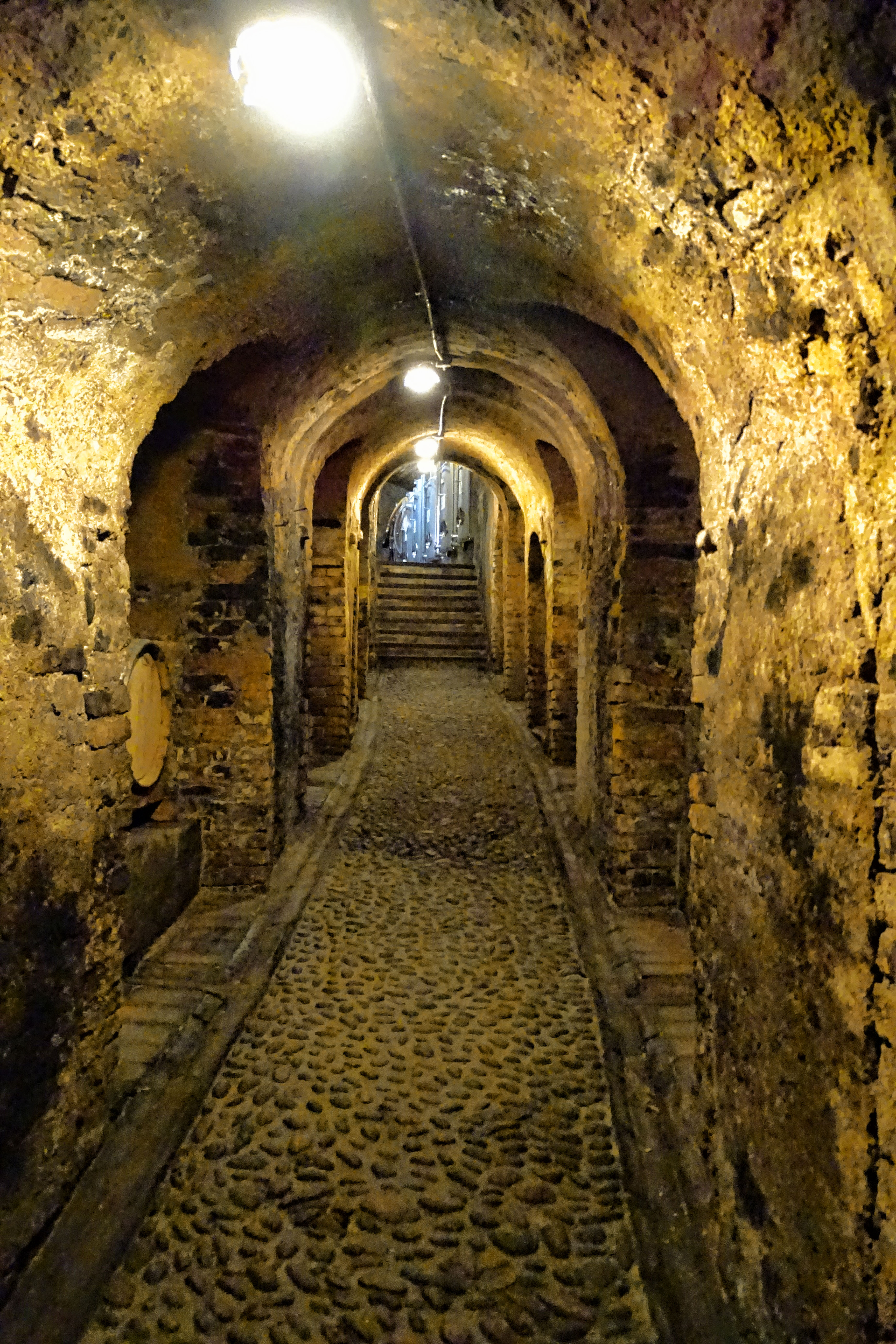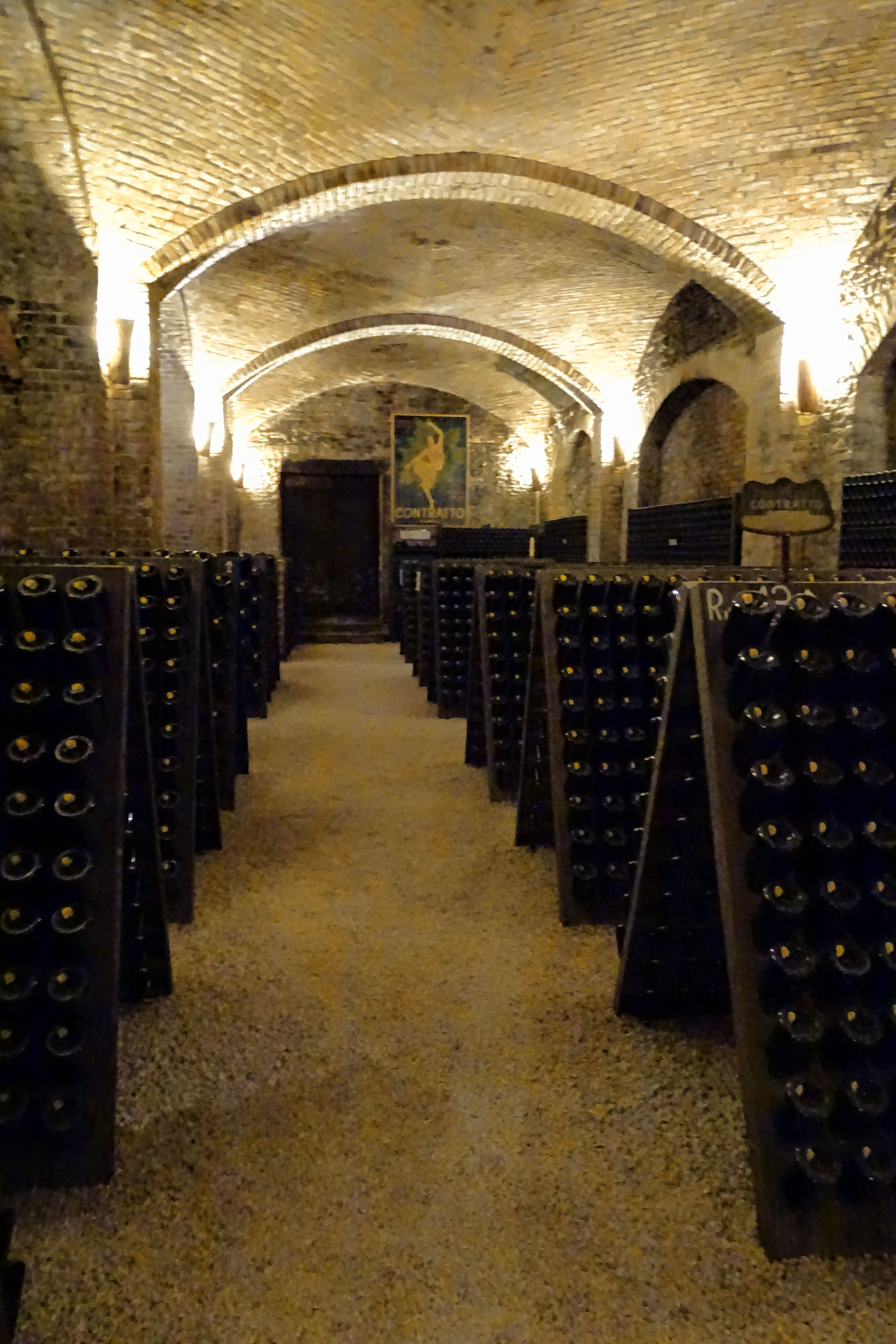 L’aria solenne che si respira nella cantina, il soffitto a volta e il silenzio che regna tra le bottiglie ricordano appunto l’atmosfera che troviamo in una cattedrale!