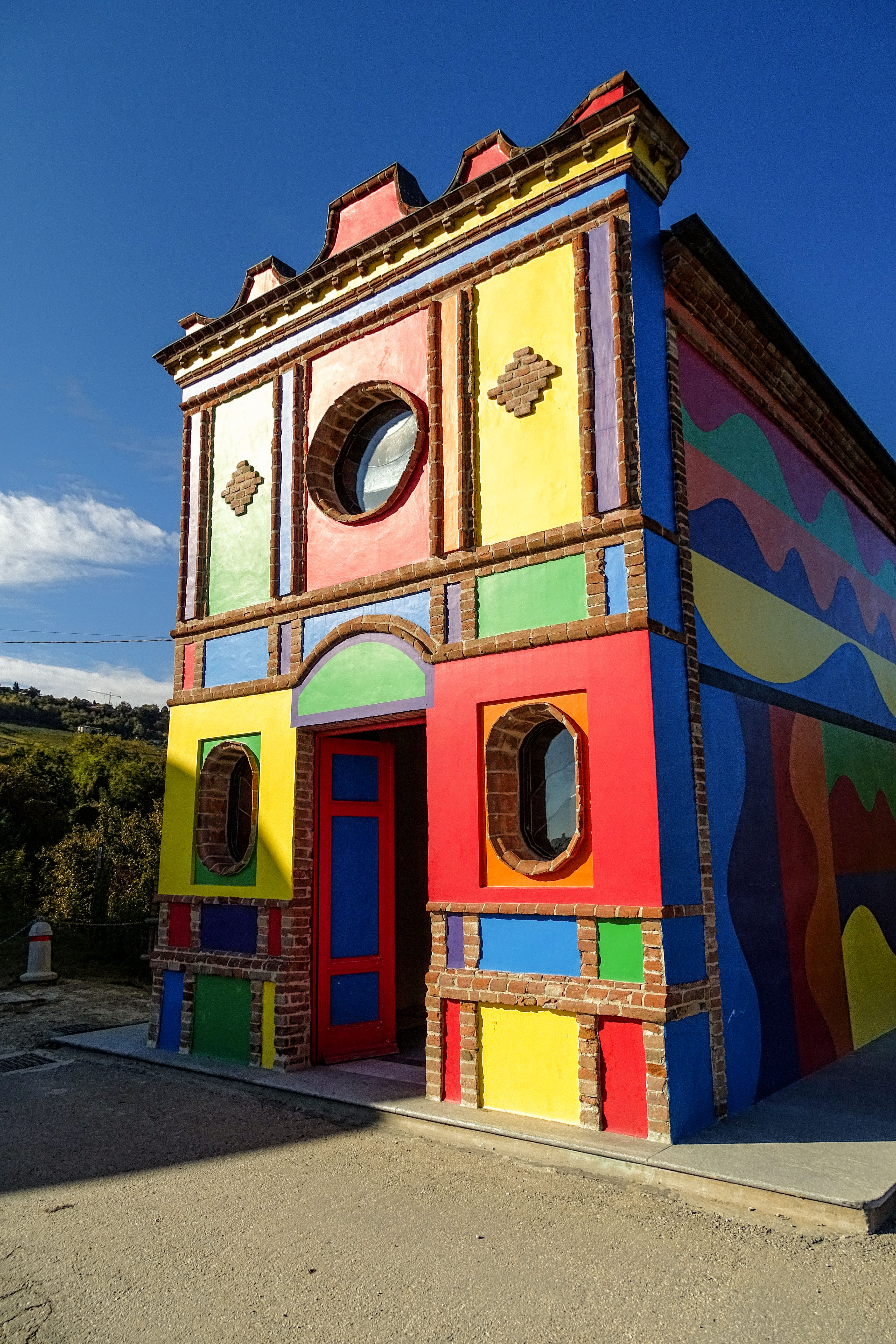 Prima di rientrare a La Morra passiamo davanti alla coloratissima Cappella di Brunate; un tempo usata come riparo per i contadini e nel 1999 completamente restaurata da Sol LeWitt e David Tremlett dopo un lungo periodo di abbandono.