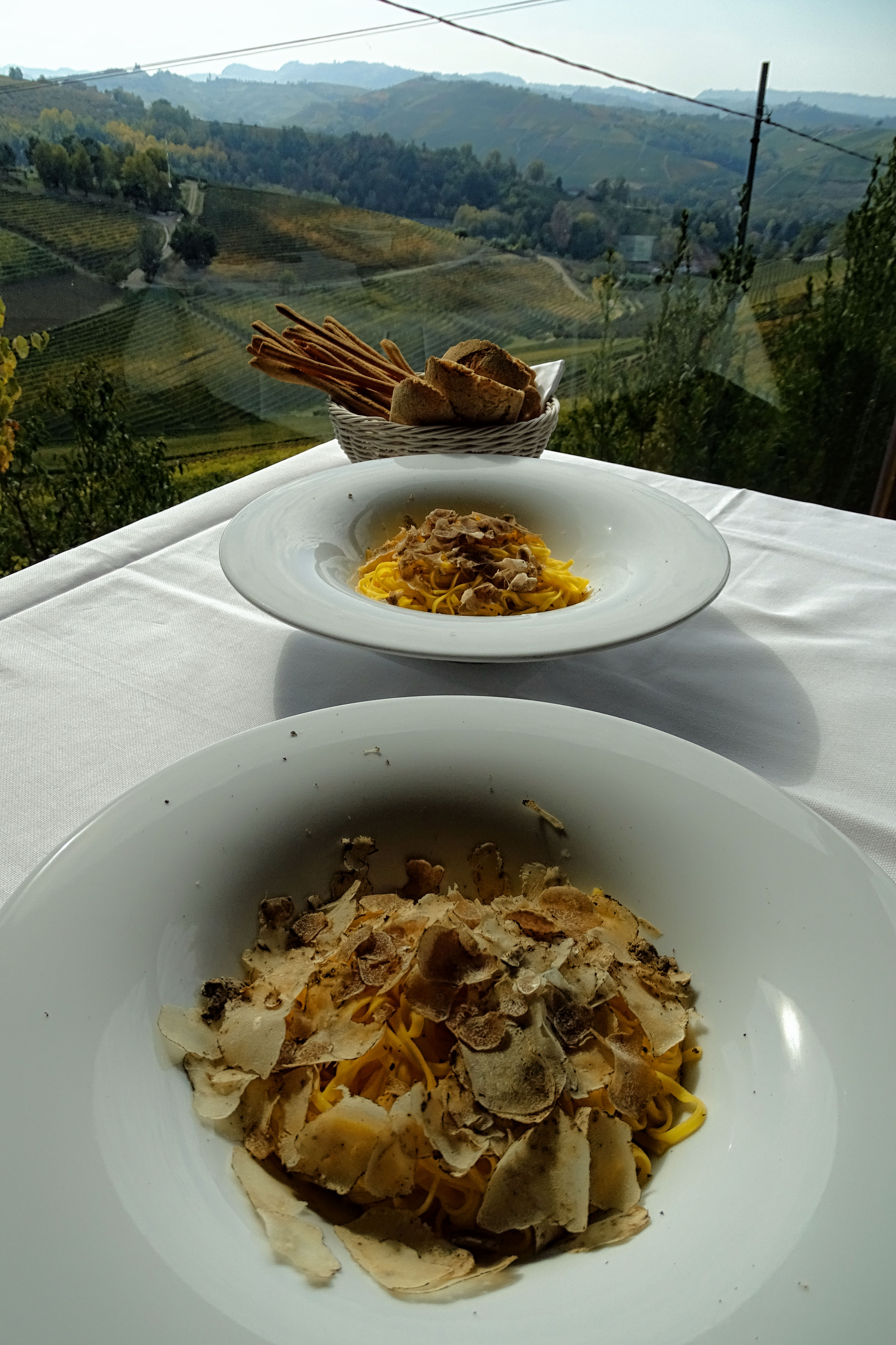 Ottobre chiama tartufo bianco d’Alba, ed essendo qui non potevamo lasciarcelo sfuggire. Quindi tra una cantina e l’altra, facciamo pausa pranzo all’Osteria il Cortile, a Diano d’Alba per dei tajarin con tartufo bianco da leccarsi i baffi! Delizioso anche il dolce: Mousse allo zabaione con granella di Meliga. Una goduria!!!!