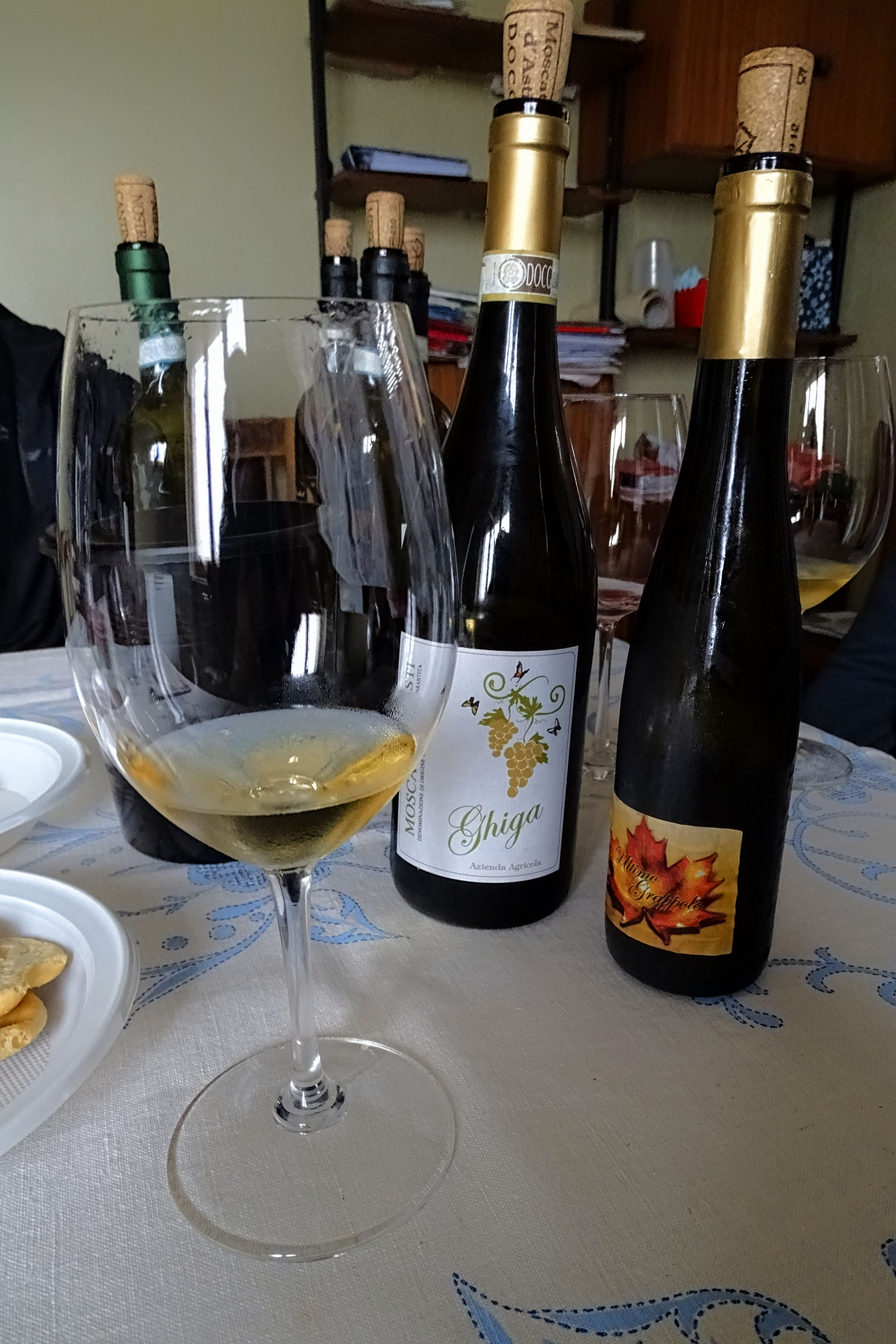 Davide ci ha mostrato con passione la storia dell’azienda, le varie fasi di vinificazione dei loro vini più rinomati e infine ci ha fatto degustare i loro prodotti di punta in un ambiente famigliare difficile da ritrovare al giorno d’oggi nelle grandi aziende ormai troppo industrializzate. Tra chiacchiere e risate abbiamo provato il loro bianco “La Favorita”, e i rossi “Dolcetto”, “Barbera d’Asti” e il “Dodici Lune”, il Barbera Superiore con un anno di affinamento in botte di rovere francese. Si conclude poi in bellezza con i dolci “Moscato” e “Ultimo Grappolo”, il passito che nasce dall’appassimento di uve Moscato, che io ho semplicemente adorato!!!