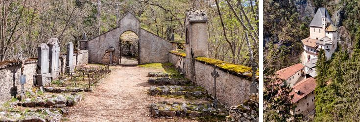 Per la vista migliore su San Romedio vi consigliamo di salire al piccolo cimitero. C’è una scalinata che parte proprio di fronte al santuario e che in meno di 5 minuti conduce al cimitero!
