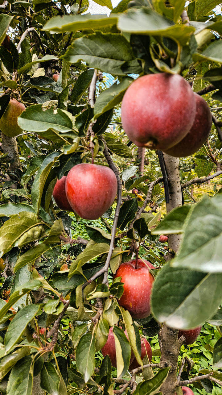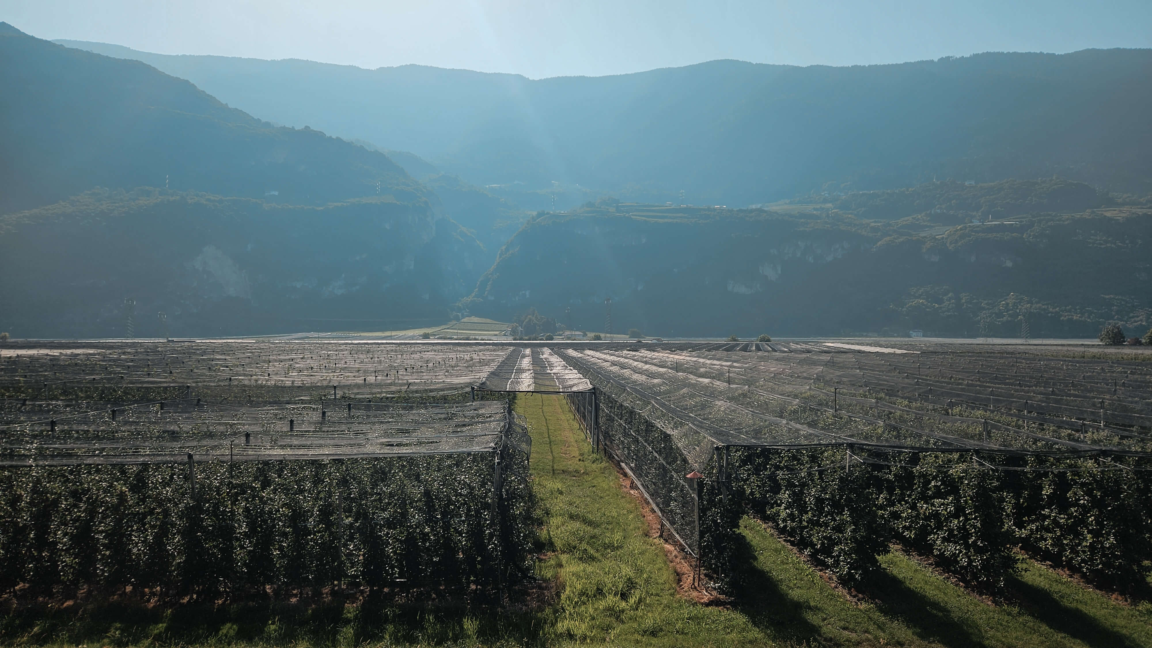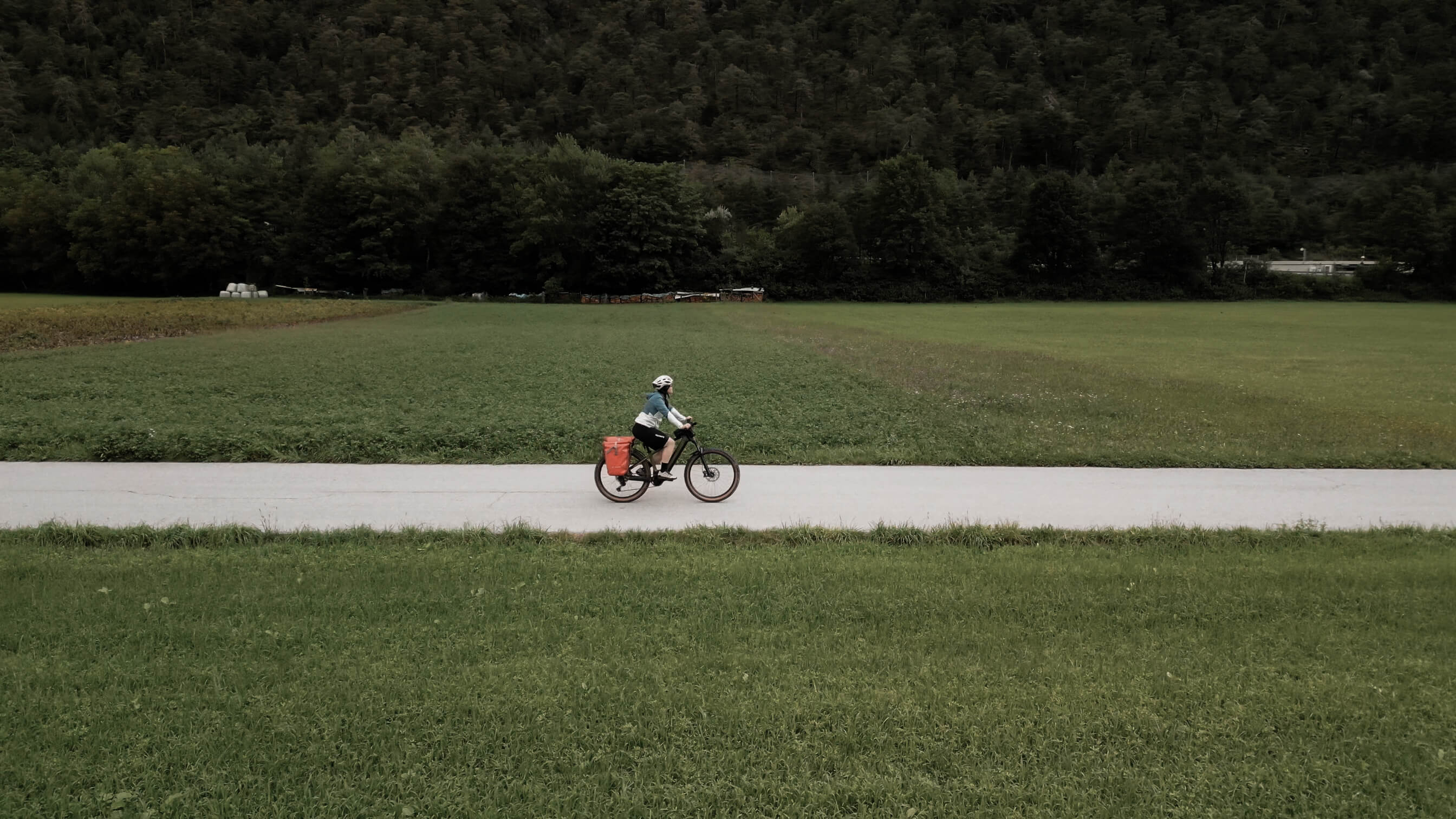 Da Merano percorriamo gli ultimi 20 chilometri della giornata verso il piccolo comune di Laces, dove trascorriamo la notte nell’accogliente appartamento della Signora Elisabeth. Per arrivare qui, pedaliamo tra i bellissimi meleti illuminati dalla calda luce del tramonto.