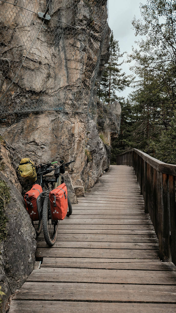 Il passo si trova a 1210 mt e anche qui, il percorso è interamente lontano dalla strada. Si pedala in mezzo al bosco, su strada sterrata e sempre seguendo l’antica Via Claudia Augusta. Alcuni tratti sono abbastanza pendenti e sconnessi, ma si attraversa un bellissimo paesaggio, tra castelli, passerelle incastonate nella roccia e laghetti alpini.