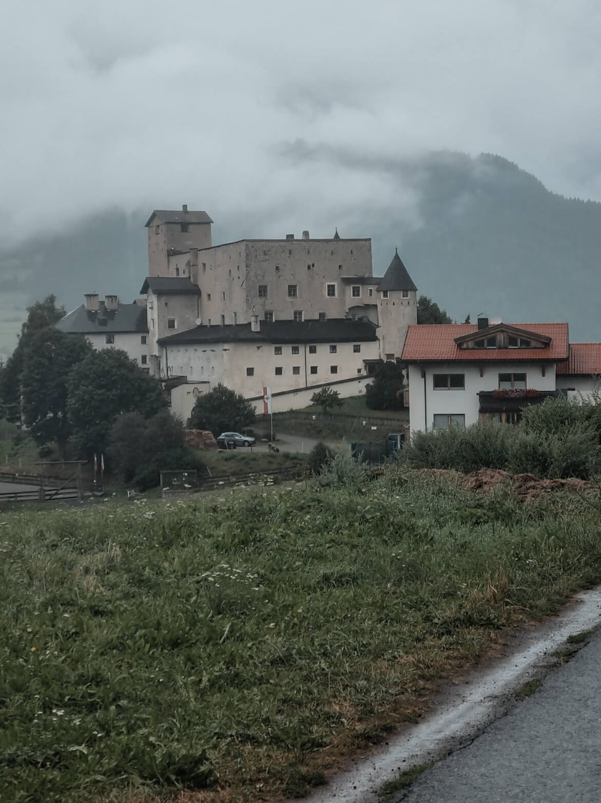 Passato il Lago di Resia giungiamo al Passo, che segna il confine tra Italia e Austria. Il Tirolo austriaco ci accoglie con una pioggia battente ma ci godiamo ugualmente la discesa, sempre su pista ciclabile, fino a Naudersberg e al suo castello risalente al 1325.